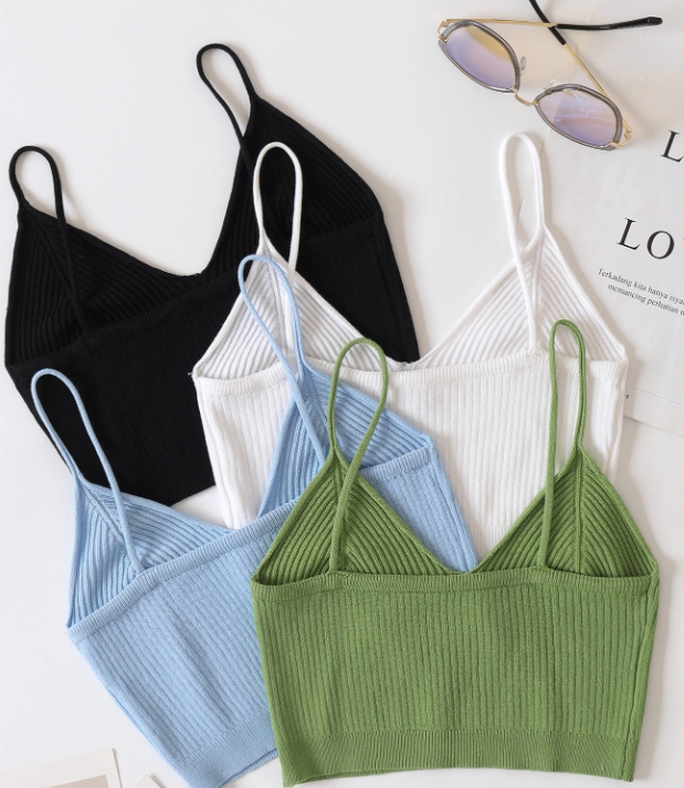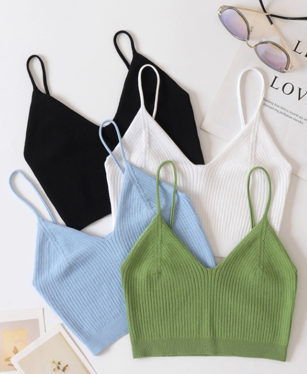 4 piezas Top tejido corto unicolor