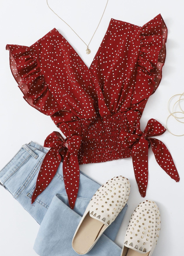 Breezaya Top de lunares con nudo fruncido ribete fruncido