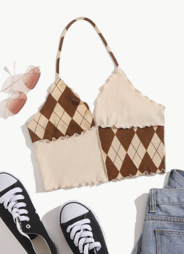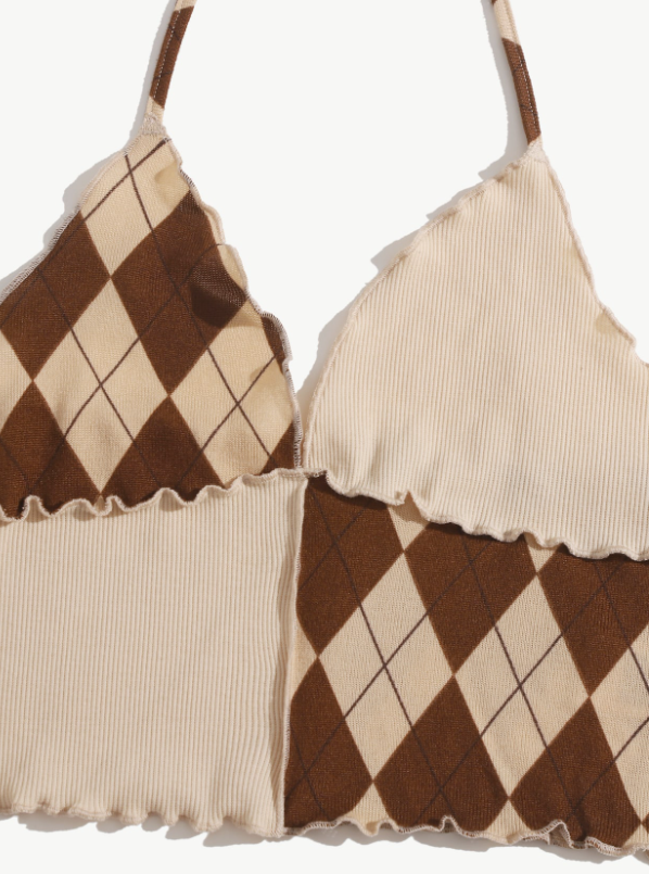 SHEIN Qutie Top halter unido con rombo ribete en forma de lechuga